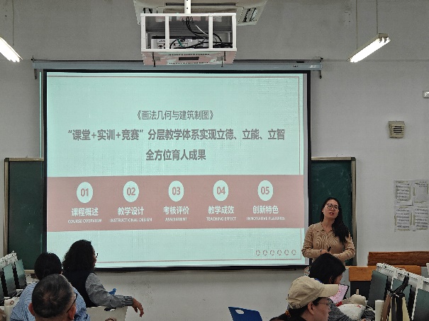 为进一步深化建筑学院教学改革,推广优秀教学经验,提升教师教学设计与课堂实施能力,近日,建筑教研室围绕前期教学比赛成果,举办专题说课分享会。邀请建筑学院全体教师前来进行交流,共同聚焦课程教学创新,探讨高效教学路径。 分享会上,在教学比赛中表现突出的魏源朔老师与张瑞霞老师先后登台,结合各自主讲课程展开深度分享。其中魏源朔老师的《BIM建模》课程曾获第二届全国教师工程创客能力教学大赛一等奖,张瑞霞老师的《画法几何与建筑制图》课程曾获第七届全国教师成图大赛一等奖、第九届全国教师成图大赛一等奖、第九届全国教师西浦创新大赛三等奖、第四届河北省教学创新大赛二等奖、2024河北省信息化交流活动一等奖。 首先,魏源朔老师以《BIM 建模》课程为核心,从教学比赛PPT的制作、模块划分和汇报技巧等方面详细阐述了经验技巧。在教学内容组织方面介绍了如何将行业前沿的 BIM 技术与课程教学深度融合,打破了传统“理论 + 软件操作”的单一教学模式,通过引入实际建筑项目案例,让学生在完成项目建模的过程中掌握技术要点,同时培养工程思维。魏老师还现场展示了课程教学中的项目成果案例,为参会教师提供了可借鉴的实践经验。 随后,张瑞霞老师围绕《画法几何与建筑制图》课程进行说课分享。作为建筑专业的基础核心课程,该课程对学生空间想象能力与制图规范意识的培养至关重要。张瑞霞老师结合教学比赛中的学情分析,重点阐述了对教学内容重构的方法;在教学设计部分,通过三维模型演示帮助学生理解复杂几何关系,再通过手绘制图与 CAD 软件操作的双向训练,强化学生对制图规范的掌握;同时,针对课程按照课前、课中和课后进行了教学设计。分享过程中,张瑞霞老师还交流了课程考核方式改革的思路,如增加 “项目式考核” 比重,更全面地评价学生的综合能力。 两位老师的分享结束后,建筑学院宋丽辉院长对本次分享会进行总结。院长表示此次说课分享会既是对教学比赛成果的进一步推广,也是学院搭建教师交流平台、推动教学质量提升的重要举措。未来,学院将持续开展此类教学研讨活动,鼓励教师积极探索教学创新,为建筑学院培养高素质人才奠定坚实基础。 此次说课分享会的成功举办,不仅实现了优秀教学经验的共享,更激发了全体教师对课程教学改革的深入思考,为建筑学院后续教学工作的高质量开展注入了新动力。