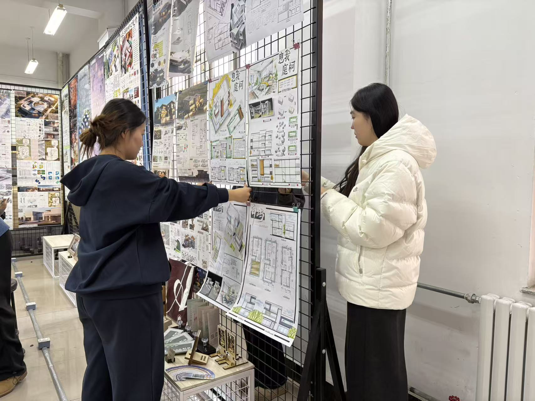 为确保第二届“筑学深耕,艺创致远”建筑教育与创新交流会顺利举办,12月28日下午,燕京理工学院建筑学院展厅布置工作紧锣密鼓推进。建筑学院副院长霍达亲临现场视察指导,亲切慰问忙碌中的师生,为活动筹备工作注入强劲动力。 视察过程中,霍院长仔细查看展厅布局、学生作业展板陈列、茶歇区规划等情况,认真听取工作人员关于布置进度、物料筹备及次日活动衔接的汇报。针对展厅氛围营造、作品展示效果等细节,院长提出具体优化建议,强调要充分利用展厅空间,全方位、高质量呈现学生设计成果,让展厅成为展现教学成效、促进交流碰撞的重要平台。同时,院长对师生们主动担当、协同协作的筹备热情给予高度肯定,鼓励大家精益求精完成收尾工作,以最佳状态迎接参会嘉宾与师生。 展厅布置现场,师生们分工明确、干劲十足。教师们全程统筹协调,细致把控每个环节;学生们积极投身展板搭建、作品摆放、环境整理等工作,以饱满的热情和认真的态度落实各项任务,现场一派繁忙有序的景象。师生同心协作的身影,成为校园里一道温暖的风景线,充分彰显了建筑学院师生的凝聚力与向心力。第二届建筑教育与创新交流会将于12月29日(周一)09:00-17:00正式启幕,活动设主会场、分会场及期末作业展厅三大区域,涵盖“好房子”住宅设计专题分享、设计师前沿讲座、建筑设计课程指标茶话沙龙等丰富环节,将搭建起建筑教育与行业实践的沟通桥梁。目前,各项筹备工作已进入收尾阶段,静待各方嘉宾与师生齐聚一堂,共话建筑教育创新,共赏设计实践成果。