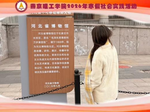 匠心守护烟火,拼搏续写征程 为了让青年学子在返乡之旅中读懂家乡的变迁、传承奋斗的精神,建筑学院号召同学们走出校园、走进街巷,以亲身探访记录家乡发展的足迹。自活动开展以来,同学们积极寻访,用镜头、文字记录下父辈们开荒拓土的坚韧,让这段返乡之旅因读懂家乡而更具厚度与力量。 造价2501 张浩 重庆红岩历史博物馆 为挖掘家乡奋斗故事、传承城市精神根脉,我走进了红岩历史博物馆。这座矗立在重庆土地上的红色地标,不仅是历史的见证者,更是家乡奋斗精神的源头活水,让每一位参观者在回望中读懂了重庆这座城市的坚韧与担当。 从革命先辈在红岩狱中坚守信仰,到如今重庆从沿江小城发展为高楼林立、活力迸发的现代化都市;从过去的艰难求索,到当下的蓬勃发展,红岩精神始终是家乡前行的精神密码。 此次活动让我明白,家乡的奋斗故事从未落幕。作为新时代的家乡儿女,我们既要铭记先辈们用热血书写的奋斗历史,更要传承这份宝贵的精神财富,以不屈的意志、务实的行动,在各自的岗位上发光发热,为家乡的发展添砖加瓦。相信在红岩精神的指引下,家乡的奋斗故事必将续写新的篇章。 土木2401 白泽恩 河间刘完素墓祠遗址 为展现家乡河间的文化底蕴与刘完素的精神传承,我将以这位金元名医的事迹为核心,结合其医学贡献与家乡情怀,抒发宣传家乡故事时的感悟与自豪。 宣传家乡河北沧州河间的故事,最让我自豪的便是讲述“金元四大家”之一刘完素的传奇。这位生于河间的医学巨匠,以一生践行医者仁心,为家乡刻下了深厚的文化印记。刘完素幼年迁居河间,因母亲病逝立志学医,数十年研读《内经》不辍,开创寒凉学派。更令人敬佩的是,他三拒朝廷征召,坚守河间民间行医。如今,家乡的刘守庙历经千年风雨依然矗立,每年的师素庙会吸引着四方宾客,人们以虔诚之心缅怀这位医者,传承着他的仁心仁术。 宣传他的故事时,我深切感受到家乡文化的厚重。刘完素的勤学创新、济世为民,不仅是医学瑰宝,更是河间人的精神底色。作为家乡儿女,传播这些故事,既是守护文化根脉,也是让更多人知晓河间不仅有烟火气息,更有穿越千年的医者情怀与文化力量。这份传承,让我对家乡的热爱愈发深沉。 土木2503 刘宗瀚 蠡县梁斌黄胄纪念馆 我走进梁斌黄胄纪念馆,在笔墨书香与革命记忆中,探寻家乡英模的奋斗足迹,更深刻体悟到精神传承的时代意义。 馆内两馆并峙,梁斌与黄胄两位同乡大师的人生轨迹令人动容。梁斌三辞高官、以笔为刃,在酷暑中用“湿被单降温法”深耕《红旗谱》,用千万字史诗记录农民革命的壮阔历程;黄胄以生活为创作源泉,将速写融入中国画,用《洪荒风雪》等作品歌颂人民,更倾尽全力筹建炎黄艺术馆,践行“大爱无疆”的艺术追求。 他们的奋斗故事,是家乡最珍贵的精神财富。作为新时代大学生,我深知今日的岁月静好,正是无数先辈用奋斗换来。此次实践让我明白,传承奋斗精神,不仅是铭记历史,更要将这份坚守与担当融入学习生活。未来,我将以英模为榜样,在土木工程专业领域深耕不辍,用专业知识回馈家乡、建设祖国,让不朽的奋斗精神在新时代绽放新的光芒。 建工2403 刘佳依 河北省博物馆 为感受家乡奋斗的历程,我先后走进市博物馆与科技馆,一场穿梭于历史长河与未来星河的旅程,让我在触摸文明温度的同时,感受科技脉搏的跳动,收获了远超视觉冲击的精神启迪。 踏入博物馆,厚重的历史气息扑面而来。展柜中,新石器时代的磨制石器,商周的青铜器,明清的瓷器。这些文物,让我体会到中华民族生生不息的精神内核。如果说博物馆是对过往的回溯,那么科技馆便是对未来的展望。一进展厅,便让人目不暇接。人工智能展区内,机器人的精准复刻,让我直观感受到人工智能从理论走向现实的突破;航天展区里,按比例还原的空间站核心舱实物,我仿佛到了浩瀚太空;生态科技展区内,新能源利用、垃圾分类处理的全过程,让我深刻认识到科技与环保共生的重要性。 此次参观,让我在历史与科技的碰撞中获得了深刻的思考。博物馆告诉我们“从何处来”;科技馆指引我们“向何处去”。这场跨越时空的对话,不仅拓宽了我的视野,更让我明白,唯有在回望中坚守,在探索中前行,才能在时代的浪潮中步履坚定,走向更辽阔的远方。 造价2301 韩甜甜 大名县石刻博物馆 这个寒假,我走进了家乡的石刻博物馆。一踏入这座仿宋风格的庭院,飞檐斗拱间的古朴气息扑面而来,仿佛穿越千年时光,与古人的匠心撞个满怀。 博物馆里,高达数十米的五礼记碑巍然矗立,碑上密密麻麻的文字镌刻着家乡的兴衰变迁,每一道刻痕都像是历史的印记。最让我震撼的是唐代何弘敬墓志铭,作为"天下第一墓志",它的雕刻工艺精妙绝伦,线条流畅而有力。在拓片体验区,我亲手尝试了拓印技艺。当宣纸覆盖碑刻,古老的文字逐渐浮现时,我真切感受到了匠人精神的传承。那些指尖磨出的厚茧、寒冬酷暑中的坚守,正是家乡最动人的奋斗写照。 这次参观让我明白,家乡的奋斗故事不仅藏在史书里,更刻在这些沉默的石刻中。这个寒假,我不仅领略了石刻艺术的魅力,更读懂了家乡人"一锤一錾守初心"的奋斗精神。未来,我也想成为家乡文化的传播者,让更多人看见石刻背后的坚守与热爱。 家乡的奋斗故事不仅是岁月的回响,更是我们脚下的基石。愿同
