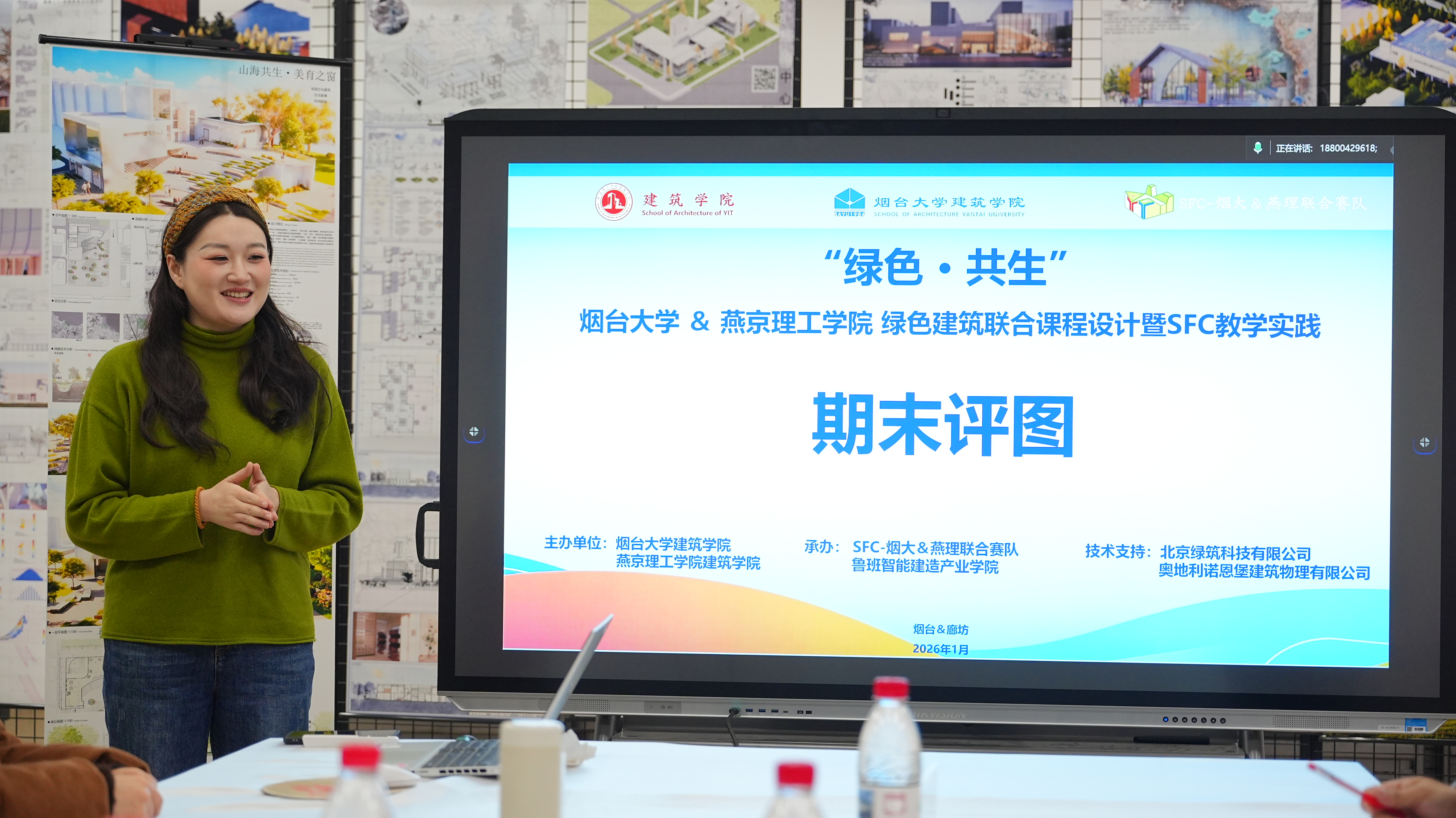 2026年1月4日,以“绿色·共生”为主题的烟台大学与燕京理工学院绿色建筑联合课程设计暨SFC教学实践系列活动迎来收官阶段。本次活动创新性地采用“线下评图+教研研讨”的双轨模式,烟台大学建筑学院冯赛老师、郝庆丽老师带领四位学生代表亲临燕京理工学院,与燕理师生共同参与线下期末评图,随后开展建筑设计课程建设研讨会,在成果展示与教学研讨中深化校际合作,赋能建筑专业人才培养。 上午的期末联合评图活动正式拉开序幕。活动由建筑教研室程馨蕊老师主持,她首先向在场师生介绍了本次评图的核心内容与流程安排,并隆重介绍了莅临现场的各位嘉宾,随后诚挚邀请燕京理工学院建筑学院院长宋丽辉致辞。宋院长对烟台大学师生的远道而来致以热烈欢迎。她强调,本次联合课程是两校携手践行 “绿色建筑教育” 理念、探索跨校协同育人模式的一次重要实践。她希望以此次评图为契机,进一步推动两校在教学资源共享、人才培养互通等方面的深度合作,鼓励两校学子在交流研讨中碰撞思维火花,实现共同成长与进步。学院副院长霍达亦亲临现场指导。他表示,期末联合评图不仅是对两校学子一学期课程设计成果的集中检阅,更是一场跨校教学理念与设计思路的深度碰撞。他谈到,绿色建筑教育的核心,在于引导学生跳出 “纸上谈兵” 的局限,在真实的设计命题中有机融入生态理念、技术考量与人文关怀。 烟台大学冯赛老师与郝庆丽老师 宋院长致辞 主持人程馨蕊老师 两校师生合影 评图环节中,刘媛媛、王梦晗、郝彤颜等10位两校学子依次登台,围绕绿色建筑设计方案进行汇报。同学们的设计作品紧扣“绿色·共生”主题,在功能流线规划、场地空间布局、造型美学表达、绿色技术应用等方面展现了扎实的专业功底与创新思维,部分作品还在细节处理与深度设计上呈现出突出亮点。评图现场,建筑教研室魏源朔老师、程馨蕊老师与烟台大学冯赛老师、郝庆丽老师组成评审团,从设计理念创新性、功能流线合理性、场地设计适配性、造型设计美学价值、图纸表达规范性及设计深度等多个维度,对每一份作品进行细致点评。评审老师们既肯定了同学们在设计中的巧思与突破,也针对方案中存在的问题提出了具体的优化建议,为学子们后续完善设计、提升专业能力提供了宝贵指导。烟台大学四位学生代表全程参与交流,与燕理学子分享设计心得,现场氛围热烈而充实。 两校学生汇报设计方案 下午,建筑设计课程建设研讨会如期举行。燕京理工学院建筑学院建筑教研室全体教师与烟台大学冯赛老师、郝庆丽老师齐聚一堂,围绕课程体系优化、评价标准完善等核心议题展开深入研讨。会上,双方围绕原有课程评价模式的优势与不足,重点探讨了“四阶递进·三维评价”的修订后课程体系——该体系将养老建筑专项课程分为认知与策划、概念与深化、整合与发展、表达与综合四个阶段,分别赋予15%、25%、35%、25%的权重,实现对学生学习过程的全程跟踪与精准评价;在评价主体上,创新采用“教师评60%+企业教师评30%+学生自评10%”的三维模式,兼顾教学专业性、行业实用性与学生自主性。此外,双方还就绿色建筑课程内容升级、实践教学环节设计、校企资源整合等问题交换了经验,为后续两校课程建设提质增效明确了方向。 课程建设研讨 本次活动由烟台大学建筑学院、燕京理工学院建筑学院联合主办,SFC-烟大&燕理联合赛队、鲁班智能建造产业学院承办,北京绿筑科技有限公司、奥地利诺恩堡建筑物理有限公司提供技术支持,既实现了两校绿色建筑设计成果的集中展示,也搭建了教学经验交流的优质平台。活动的成功举办,不仅深化了两校在建筑专业教学领域的合作共识,更推动了课程体系与评价标准的优化升级,为培养具备绿色建筑理念、创新思维与实践能力的高素质专业人才奠定了坚实基础。未来,两校将继续以联合课程为纽带,持续探索跨校协同育人新路径,为建筑行业高质量发展注入更多青春力量。